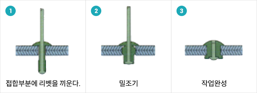 • 브라인드 리벳에 의한 접합 접합에는 아래 그림에 표시한 바와 같이 한 방향부터 작업할 수 있는 브라인드 리벳이 편합니다.